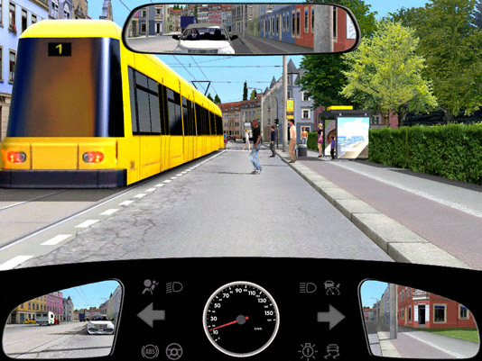 Ich überhole die Straßenbahn, weil diese noch nicht steht