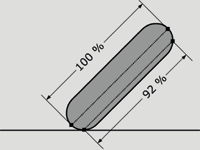 1. Je breiter der Reifen, um so stärker muss das Motorrad bei gleicher Kurvenfahrt geneigt werden. Die Reifenaufstandsfläche verschiebt sich nämlich zur Kurveninnenseite, der Schwerpunkt des Motorrades bleibt aber gleich. Dadurch entsteht ein zusätzlicher Neigungswinkel. Dieser beträgt bei Hinterradreifen: